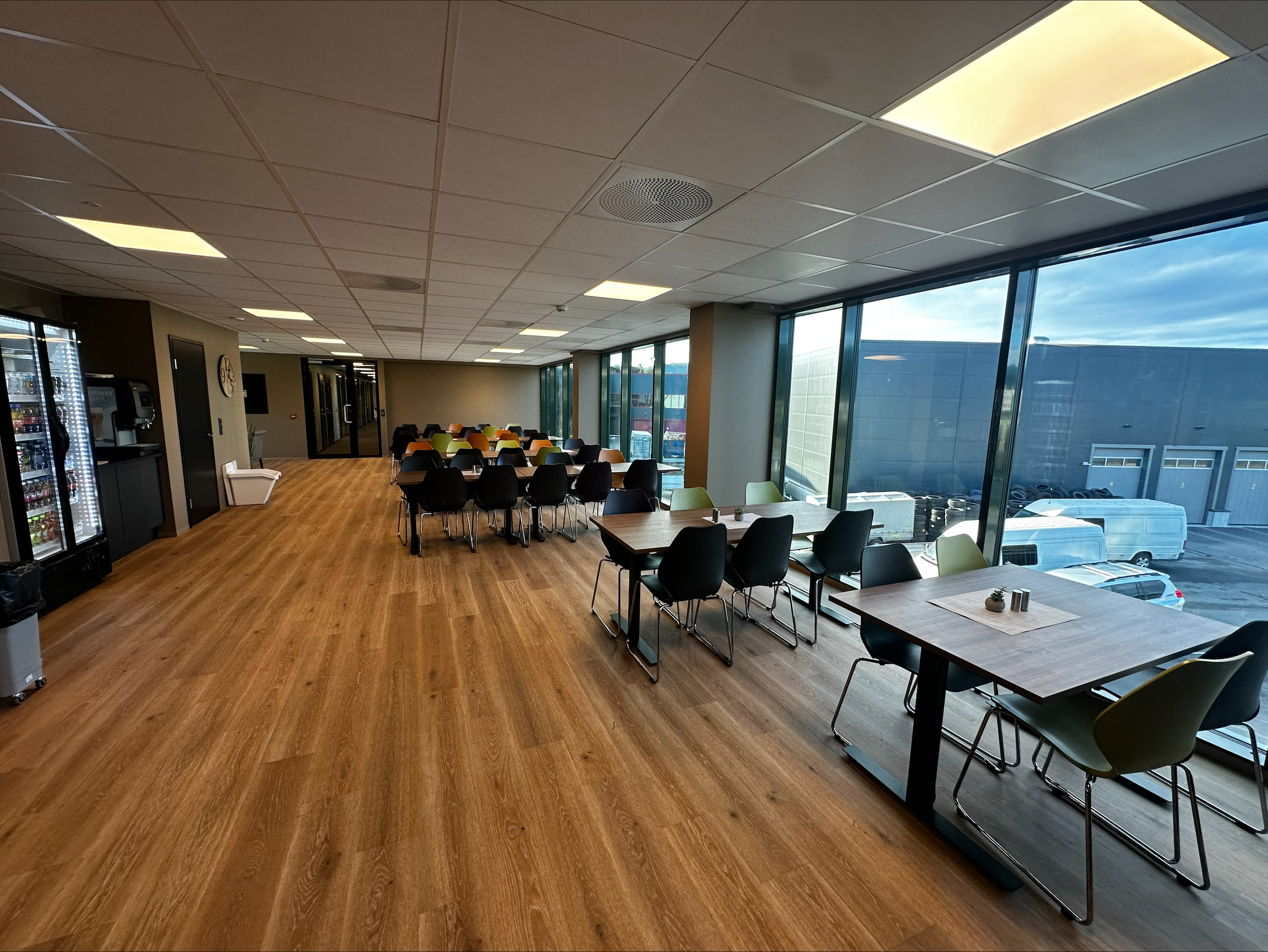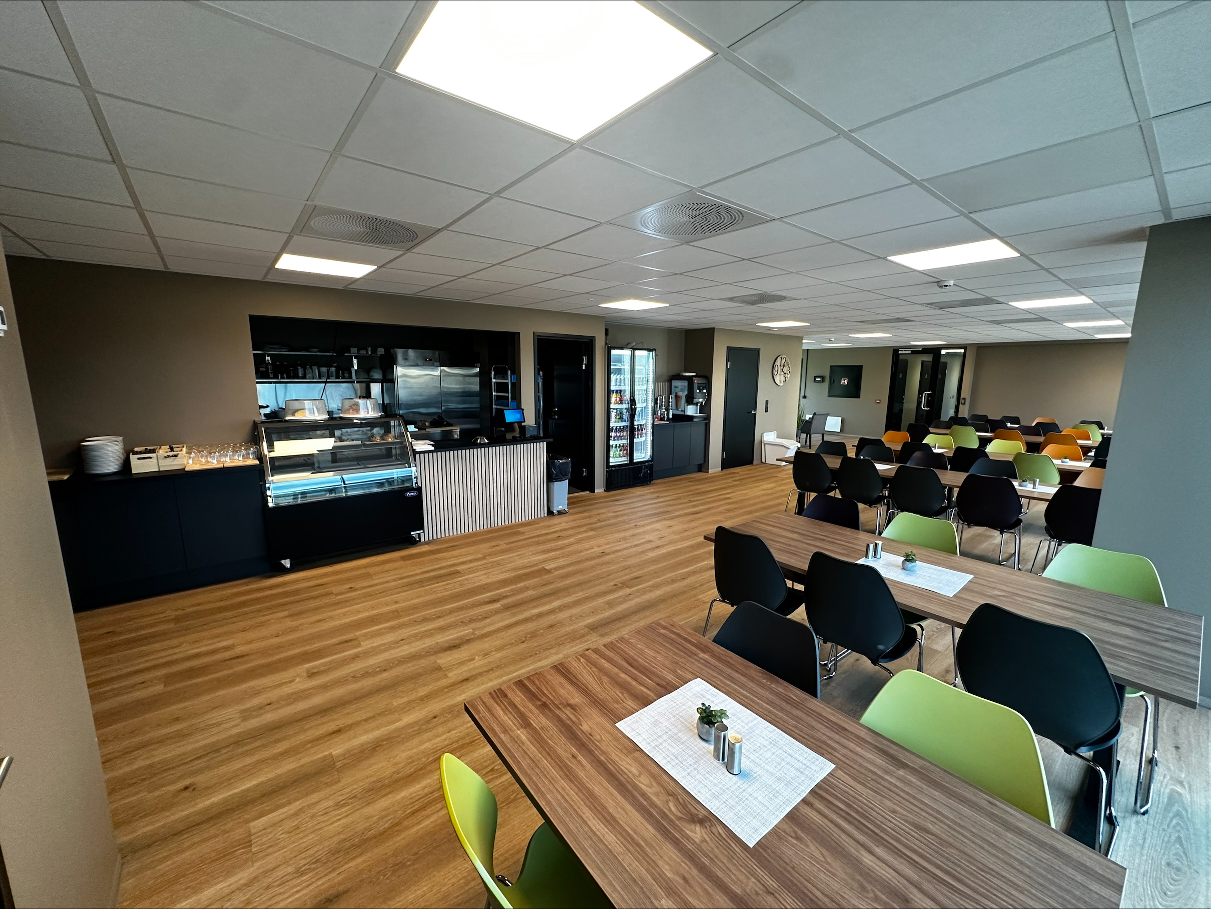 Kantinen har sitteplasser til opptil 50 personer og passer perfekt til selskaper, møter og arrangementer.